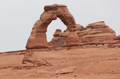 Our next stop was THE stop in the park: Delicate Arch. This is the arch found on Utah license plates. There were two ways to get here: the strenuous hike brought you right up to it, or there was a half-mile walk that you could see it from about a half-mile away.